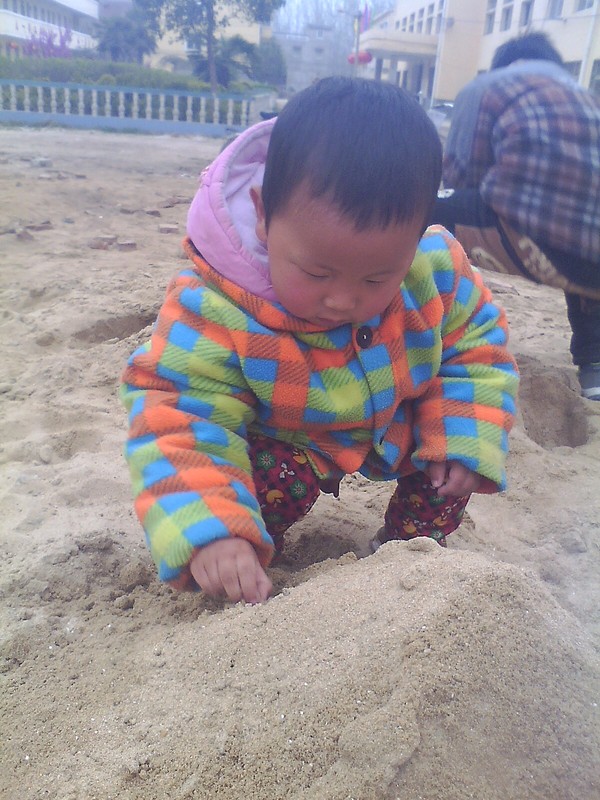 小孩i子都很爱玩沙子呢