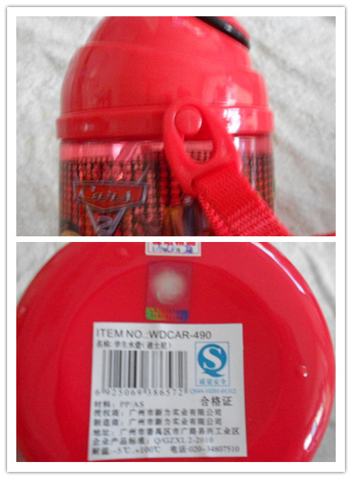 罐罐虽然已经有好几个杯子了,可我一看见好看就忍不住,而且家里面有个大的水杯,里面的吸管被我在有次洗时倒掉了,呵呵,那是早上没有清醒的情况下发生的,结果里面的吸管就用的喝酸奶的吸管暂时代替的,呵呵。正好这次看到好看的,赶紧又给罐罐败了一个新的漂亮的水杯。是在淘宝的天天特价上购买的,才19.8,还包邮呢![]() 这是外包装盒子,很醒目的麦昆标志 ![]() 收到的实物展示图 前面和后面的图案是不一样的 ![]() 瓶盖的设计也很漂亮,按住黑色的开关,盖子就直接弹开了,很好打开的 ![]() 旁边有袋子,在家就可以取下来,在外面就可以提着带子走,方便多了。 底部有产品的条形码,生产厂家什么的,看起来还是比较正规,而且闻起来没什么味道的 ![]() 杯子的容量还是很大的,490ml的 ![]() 看看,罐罐小朋友想马上就要用,我只好赶紧去洗干净,再用开水烫烫,才给他用的,马上就装上水喝起来了,貌似还很陶醉似的。 本来罐罐还想把这个杯子带到幼儿园去用,想想还是算了,就带个旧去算了,这个新的还是自己带出去用放心些。毕竟自己要爱惜些的。呵呵