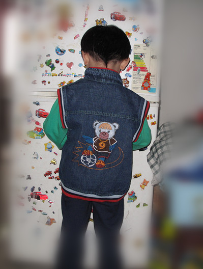 ![]() 罐罐本来有两毛衣的背心,还有件他哥哥给的旧背心,只是现在穿毛衣背心实在有点热了,也就把那毛衣背心都收拾好,放柜子了。而且我们最近这段时间的天气是忽冷忽热的,一天是穿短袖,一天又突然冷得穿两件,这样的天气,孩子就很容易感冒,生病,这不,我家罐罐这也是才生病快一个星期才好,可把我们折腾够了。 ![]() 想着下个星期罐罐就又要开始上学了,怎么也要带件背心在他的书包里,以防万一突然降温。于是昨天下午就带着罐罐出去逛街,也就正好叫罐爸在那里等我们就是了。结果罐爸还比我们先到呢。 ![]() 于是去的地下商场去看看,都差不多要把那地下商场走完了,在最后才在衣服堆里面找到这件牛仔背心,简单试了一下,觉得还将就,一问老板价格,说是要45,我直接就杀成30.反正这都是换季的衣服,都是清仓的,一般都会卖的。 ![]() 看罐罐上身的效果图,还不错吧,稍微有一点长,明天还可以穿,就是专门要这种 ![]() 背后还有可爱的小熊图案,还是刺绣的 ![]() 我说我来给罐罐把拉链拉上,他非要自己来,呵呵。这种情况我是不会阻止的,正好可以锻炼他的动手能力了。 ![]() 还不错,还真是自己把拉链拉上的 看起来小家伙还是很有精神的,呵呵 ![]() 怎样,还不错吧,平时就可以放在他书包里的,又不占地方的,又很实用的衣衣。 本作品未经作者许可不得转载,转载请征求作者意见。擅自转载使用,将保留追究其法律责任的权利!