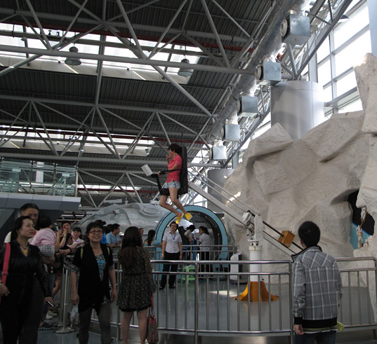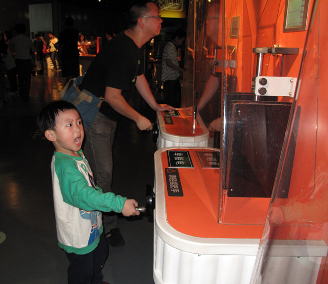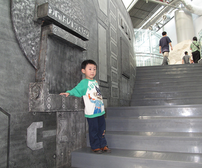 这个星期天是罐爸难得的起了个大早,跑过来把罐罐叫醒,罐罐一起来就唠叨着要去南坪玩,因为那里有他最喜欢的儿童游乐场什么的,好玩的比较多。可由于我们出门时竟然是下午2点了,如果去到那边就时间太晚了。罐爸就临时决定去科技馆,正好那天科技馆免门票呢。上次我们去过一次,是在外区的一个小景点,也是免费的,而这次去的是整个科技馆的7层大楼。平时是要收费的,好像是20,还是40一个人,因为星期天正好是什么旅游日,重庆55个景点都免费。