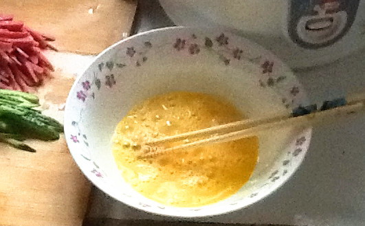 将胡萝卜和火腿过油 这是小孩滴!比较细哦~~看见没~~