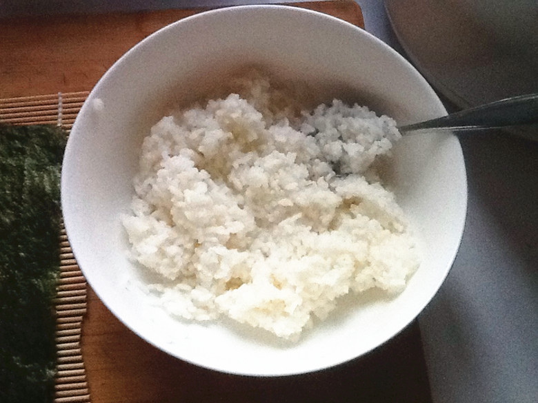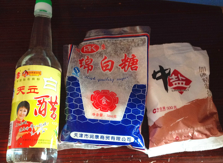 加入适量白醋、白糖、盐,就说是2:1:1,我感觉还是按照个人口味吧! 搅拌均匀,如果有寿司醋就更加方便啦!