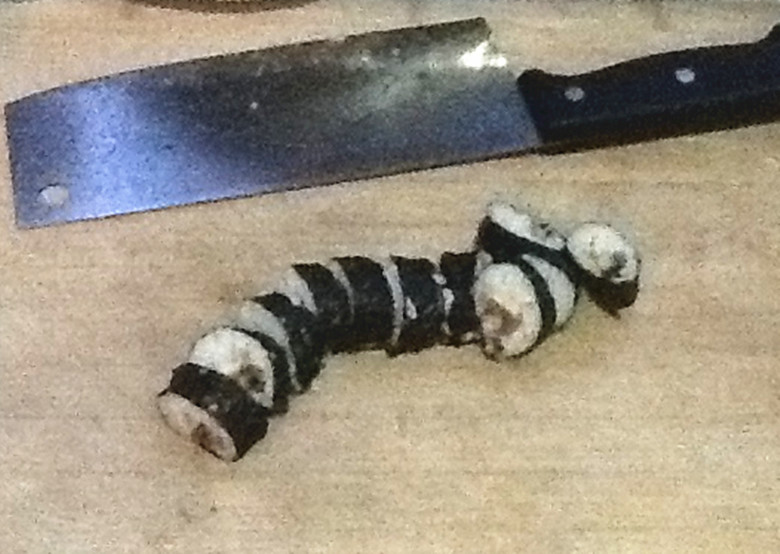 用刀切小段,切之前刀的两侧抹上点水,就不会粘啦!