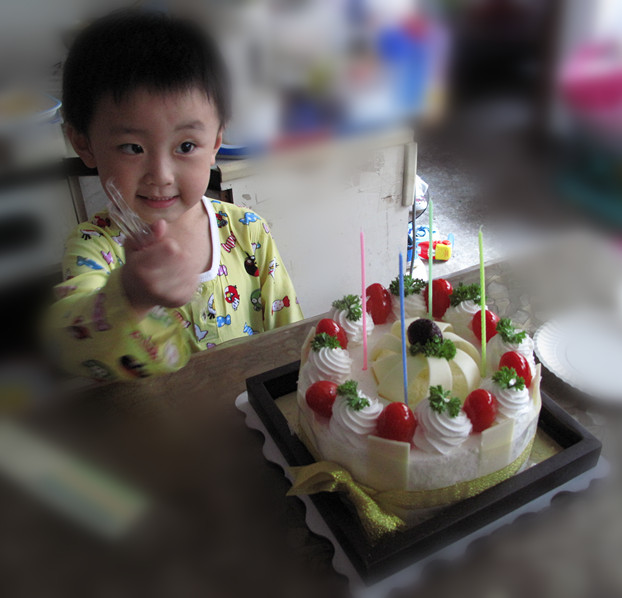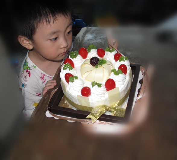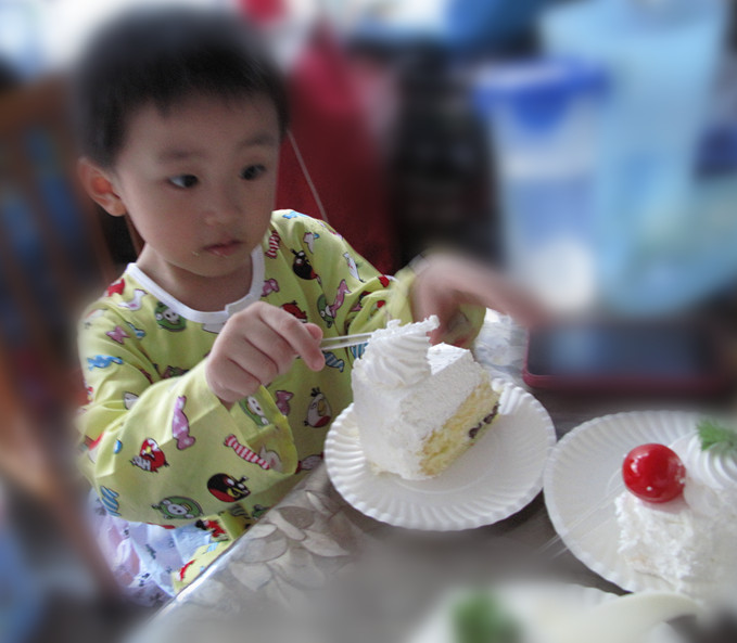 吃蛋糕是孩子们觉得过生日必须要有的,呵呵!