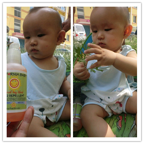 夏天的午后,推着宝贝出门,去公园,去小河边玩耍时多么惬意的事情,可是蚊虫们也开始出来活动了,他们最喜欢叮小宝宝,因为小宝宝的皮肤细嫩,好吃!每次看到玩的正高兴的宝贝浑身上下被叮的一个个的红包,而宝贝还一边的不停的自己蹭自己的痒痒,还在继续的玩儿,妈妈的内心纠结啊!想让宝贝继续多玩一会儿,有痛恨那可恶的蚊子,要是在家,还有蚊帐,蚊香的可以用,这在外面怎么办呢?在网上为宝贝找到了美国加州宝宝的驱蚊液,只需要轻轻的这么往宝宝身上喷一喷,蚊虫就不会再叮宝宝了,真的非常的神奇呢!