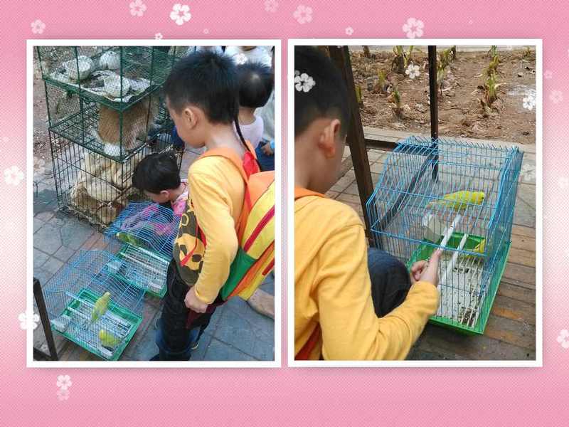 在去大宝幼儿园的路上,要经过一排街边餐馆,今天接宝回来的时候,远远的就看见在一家餐馆门口围了一群孩子,走近了一看,原来门口放了几个笼子,里面有好多的小兔子,还有小鸟。宝当然不会放过这个机会了,赶紧凑过去看。还捡了路边的小草喂小兔子吃,还别说,小兔子很给面子哦,不是胡萝卜也能吃得很香呢。宝一直在嚷嚷,妈妈,你看,小白兔在吃草啊。别说,这还是宝第一次喂小兔子呢。 ![]() 上面几层笼子里是小兔子,最下面一层是鸽子。 ![]() 喂完了小兔子,又去看小鸟了,这几只小鸟的颜色特别好看,平时我也很少看到,好几个小朋友都在围观,宝一直看了舍不得走。 ![]() ![]() 看完了小鸟,又看到前面还有一只羊,我叫宝走近一点看看,宝说不敢,怕羊会用角顶他,然后在旁边做斗牛的动作。 ,看了好一会儿,再三催宝,才肯走,再往前走,宝直接冲近了便利店,缠着要我买QQ糖,还说要买两包,最后给了宝一块钱,允许他买一包。 ![]() 宝选了橙子味道的QQ糖,自己去付了钱,然后就开吃了。 ![]() 到了家门口,想起家里没盐了,就告诉宝说要去对面超市买点盐,宝自告奋勇地说他要去买,让我给他钱。我以为他不知道盐在哪里,给了他钱后就在后面跟着他,没想到他直接就走到放盐的架子那里,选了我平时买的盐就直接去柜台付钱了。看来宝是知道盐长什么样的了。而且架子上有两种盐,他还选对了我要的那种。 ![]() 拿了盐就直接去柜台付钱了。