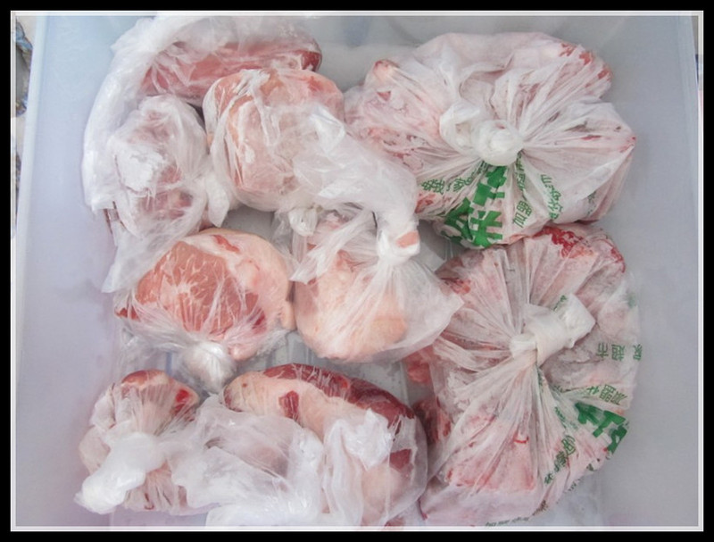 走着走着,走到海鲜摊,老妈说鲅鱼不错,好嘞,赶紧让人杀了20条,我和老妈各10条,付过钱就走着。继续走着经过冷冻店,老妈说你做的可乐鸡翅不错,买点吧。我赶紧点头买了4大包,和老妈各2包,今晚吃可乐鸡翅。接着到了肉摊,老妈说,你不能让家里断了肉,整天出去买,如果哪天你懒了不想出门,怎么办呢?所以家里一定随时备一些肉类,切成一块一块,分别装在收纳袋里,吃的时候放在冷藏柜里解冻,就方便吃了。我说也是,就让人切了百来块钱的肉,分别切成一块一块的装起来,又剁了些排骨备用,老妈也买了些。