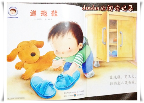 ![]() 阅读日期:3月29日 参与人员:外婆和宝宝 阅读绘本:《婴儿画报:递拖鞋》 绘本特色:培养孩子好习惯,给大人递拖鞋。 适合年龄:2~3岁 阅读心得: 周六的晚上到家,还没换鞋,蛋蛋就跑过来,手里拿着一只(是一只,不是一双。。。。)我穿的拖鞋。 我接过来后,他又去拿了一只(还是一只。。。)蛋爸穿的拖鞋。 哈哈~~~给我们递拖鞋啦~~~ 虽然只有递过来一只拖鞋,但是我们还是很开心。 进屋才发现,原来外婆刚刚和蛋蛋看完这个《递拖鞋》的故事。 悠悠在家里整理拖鞋,蓝色的拖鞋是爸爸穿的,爸爸回家了,他把拖鞋递给爸爸穿。 爸爸开心地哈哈笑~ 悠悠又找到妈妈穿的拖鞋,比爸爸的小,是红色的,他把拖鞋递给妈妈穿。 妈妈也开心地哈哈笑~ 小狗闹闹看到了,也学着,叼着悠悠的小拖鞋给悠悠,大家看了一起哈哈笑~ 看来这个故事的示范效果很好,看完故事正好遇到我们回家,就用上了~~ 还把我们乐的屁颠颠的