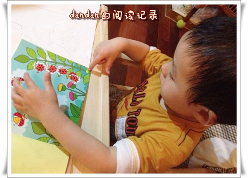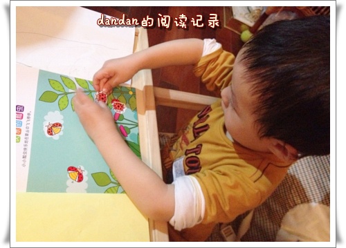 ![]() 阅读日期:4月18日 参与人员:妈妈和宝宝 阅读绘本:《我的第一套启蒙认知贴纸书》 绘本特色: 贴纸认动物学数数 适合年龄:2~3岁 阅读心得: 话说这套书买来好久了,给蛋蛋看过一次,就因为我收拾书柜给收起来了。 最近总是看绘本,也没玩贴纸,想起来可以跟他玩玩这个。 其中这本《好玩的虫子》,以前贴过一点儿。 还有好多没贴呢,蛋蛋听说要玩贴纸,非常兴奋,跟着我从书架里取了书,又跑到小桌子旁坐好。 这本书大约认识六七种昆虫,比如蜘蛛、蚂蚁、甲虫、毛毛虫什么的。 然后每种动物的页面都是一种它的生活环境的写照。 而且页面里也会画一只那种小动物。 贴纸没有什么位置上的讲究,孩子们可以随性贴,随便贴在哪里都可以。 而且贴纸的质量还不错,跟巧虎贴纸差不多,可以撕下来再贴,反复贴。 小家伙贴的一组瓢虫,我个人觉得很有意思,他把瓢虫整齐地贴了一溜,贴在画面的树叶上。 边贴还边编故事呢,说小瓢虫爬啊爬,爬到外婆家。 ![]() ![]() 这本贴纸书的设计还有一个有心机的地方,就是可以在一边贴小昆虫的时候,一边让孩子数数。 最多也不超过十吧,对于上幼儿园之前的孩子来说,还是有一点小挑战的哦~~ 本作品未经作者许可不得转载,转载请征求作者意见。擅自转载使用,将保留追究其法律责任的权利! 个性签名