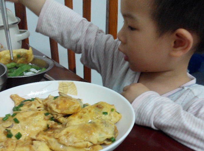 ![]() 昨晚想要煎鸡蛋吃,最近家里的鸡蛋很多,前段时间买了鸡蛋后孩子又生病,就没敢给吃鸡蛋了。后来公公回老家,又带了很多的鸡蛋回来。所以家里暂时不愁没鸡蛋吃了。我还有一个鸭蛋,也是上次一起买的。这好像是我第一次买鸭蛋吧,都不知要怎么吃好。于是我用下厨房搜了一下鸭蛋的做法,大都是咸鸭蛋的。不过我看到竟然有人说有鸭蛋做蛋饺,又一下子勾起了我的欲望,我也很久没做蛋饺了,没想到还可以用鸭蛋来做呀。就做这个好了! ![]() 鸡蛋和鸭蛋各一个,后来我觉得这里太少了,所以又加了一个鸡蛋,所以一共用了两个鸡蛋一个鸭蛋。 洗净表面,因为蛋壳表面经常会有些细菌,所以打蛋前最好要洗干净蛋壳。 ![]() 把蛋都打进碗里,用勺子把蛋液搅拌均匀。 ![]() 瘦肉末,加葱花、盐、麻油、番薯粉调味。 ![]() 煎锅里放少许油,倒一些蛋液下去,然后放点瘦肉末。 ![]() 用锅铲翻过鸡蛋的一面,把瘦肉末包住。两面稍微煎到变色就装起来。继续煎下一个。 在煎蛋饺的时候,小羽在一旁叮嘱我不要烫到手呀!可是,我还是给烫到一点点了。 ![]() 全部蛋饺煎成型捞起来备用。我把这些装盘后,又先炒了两个菜,才继续来煮这个蛋饺,可把小羽急坏了。他拿着碗和筷子,都等半天了。我说这还没煮熟,里面的肉还是生的呢,叫他再等一等。他都等得要生气了。 ![]() 把青菜炒好后,我才把蛋饺放回来煮,省得洗锅呀。 ![]() 锅里加少许油,倒入蛋饺,然后加水加酱油加生粉水等焖煮一下。最后撒上葱花就可以装盘了! ![]() 香喷喷的蛋饺终于上桌了! ![]() 终于可以吃了,可把小羽馋坏了。不过还很烫,他说先夹一个放在碗里凉一下,先吃菜再吃这个。他说这个很好吃,叫妈妈下次还要做这个来吃呢!