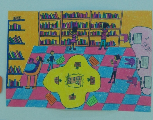 前一阵子我们参加了我心目中的图书馆的绘画活动,点点说要参加活动,于是我们就一起画了一个作品,我们心目中的图书馆,然后我们画的作品在星期天的时候送去图书馆了,点点送去的时候还有点舍不得呢,我说到时候会展出的,我们还可以看见我们的作品的。