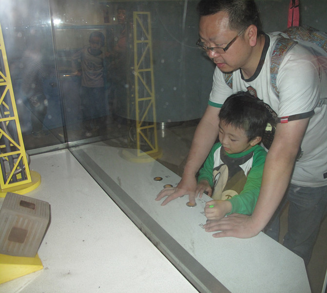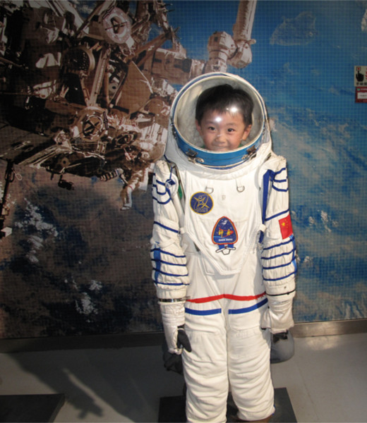 科技馆孩子都喜欢。小家伙的宇航员照,很可爱。 |
