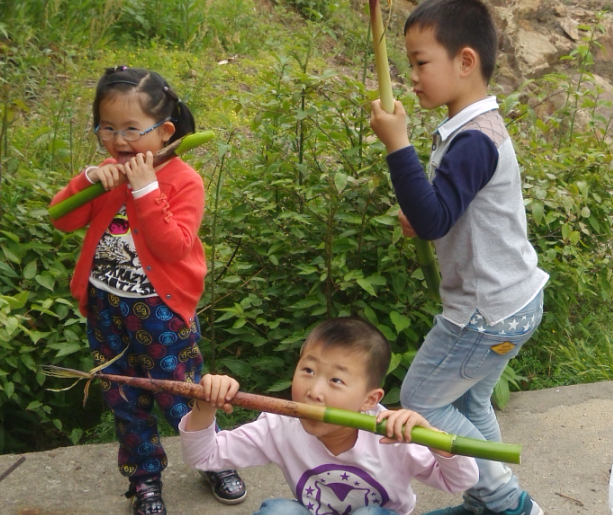 点点跟着大哥哥一起去竹林里面探险了,还每人找了一根竹子玩,大哥哥走在前面,几个小朋友跟在后面,一路走过崎岖的小路,来到了小河边,然后再原路返回,回来的路上,还发现了,很好玩的蒲公英,点点就去吹蒲公英,一吹,蒲公英的种子就到处飞舞,好看极了。