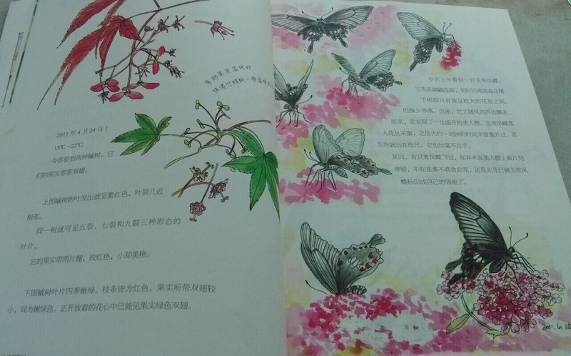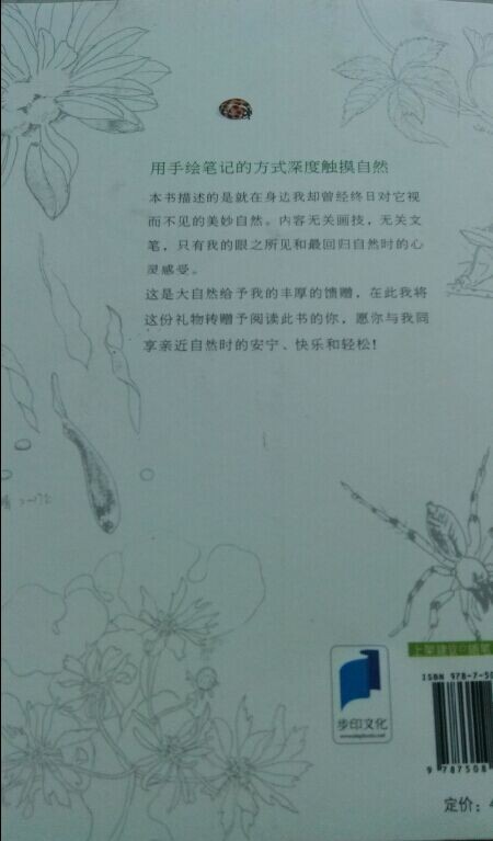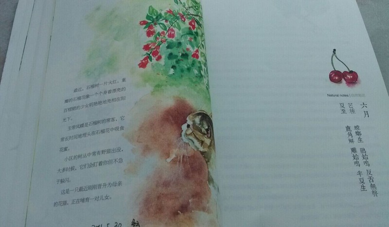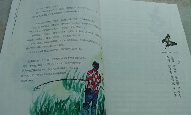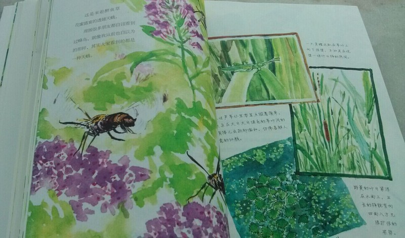 生活中从不缺少美,而是缺少发现美的眼睛。 ——题记 拿到喆妈公益阅读、中信出版社、步印文化提供的《大自然笔记:与神奇自然的四季约会》书的第一时间,我心情很复杂:“激动——不安——坦然”于一身。 首先是激动。因为通过前期了解,已被《大自然笔记》其如诗如画的文风深深吸引,并对其“觊觎”许久,终于拿到手上,难免有些小激动。 其次是不安。尤其是当我撕开塑料薄膜包装,翻开带着墨香的内页,立即被其明艳、细腻的手绘画所折服。我要如何下笔才能将这如此美艳的场景、作者优美的文笔表达出来呢?想想这些甚是不安,生怕自己不成熟的表达品不出原书味道。 最后是坦然。当我安安静静地将《大自然笔记》从头至尾欣赏一遍后,心里的不安情绪渐渐抚平,更多了一份坦然。我知道自己的书评水平如何倒在其次,能用心感受到这份作者创作带给读者的快乐和享受就足够了。我享受《大自然笔记》带给我眼睛、耳朵、心灵的震撼之美。 人·书 ![]() ![]() “《大自然笔记》作者任众,新浪博客和豆瓣里的人多多。本职工作是室内设计师,业余爱好很多,并醉心于大自然的花鸟虫鱼、风花雪月。 2011年开始做自然笔记,将画画、摄影、阅读、集邮等跟亲近自然整合为一件事,顿觉事半功倍起来。”单看《大自然笔记》封底折页上作者介绍是不是就有一种耳目一新之感?首先,作者不是专业派,因此就没有传统作家的“腔调”;其次,她将自己的爱好、特长融为一体,更容易“我手绘我画,我手写我心”,这种随性又不随意、专注又不死板的文风让人喜欢。 “本书描绘的是就在身边我却曾经终日对它视而不见的美妙自然。内容无关画技,无关文笔,只有我的眼之所见和最回归自然时的心灵感受。 这是大自然给予我的丰厚的馈赠,再次我将这份礼物转赠予阅读此书的你,愿你与我同享亲近自然时的安宁、快乐和轻松!”《大自然笔记》封底用作者朴实的文字表达出她“用手绘笔记的方式深度触摸自然”的初衷,让读者对此书产生浓厚兴趣。 ![]() ![]() 《大自然笔记》作为《笔记大自然》实践版、《自然笔记》姊妹篇,全书依照七十二物候,按月记录一年中自然里的各种生物,配以作者手绘的色彩缤纷的插图。上海周边公园和郊外的昆虫、蚊蝇、鸟类、种子、植物,在作者笔下栩栩如生,忠实地展示了神奇自然中,各类生物怎样按四季变化而消长、生息的过程。自然的美变化万千、周而复始,它们隐隐于市,又真真切切地隐藏在我们身边。《大自然笔记》带给读者一场与自然的奇妙约会。 《大自然笔记》全书主要分两个部分,第一部分为“十二个月的自然笔记”,主要以1-12月为脉络,将72物候、24节气贯穿其中;第二部分为“主题笔记”,包括蝴蝶灌木醉鱼草、柳树上的盛宴、我的锹宠、桂花日记、青凤蝶死亡之谜等。除此之外,《大自然笔记》还温馨地给读者列出“自然笔记攻略”,告诉读者笔记自然装备、观察内容及记录形式等。 情·景 阅读《大自然笔记》时,我采用与以往“从头到尾”顺序精读不同的方式,首先大致浏览一遍,然后直接翻到9月份开始细细阅读,因为拿到书时正值9月,我要把书中内容与实际相比对看,增加印象感和真实感。然后再顺序阅读。 ![]() 细细品读《大自然笔记》后,我被作者细腻、幽默的语言,细致、形象的手绘图深深折服。我原来从没有仔细观察、留意过的物种和自然在作者笔下显得如此生动、有趣,不由得多了一份“亲近自然”的情怀。同时,我也进一步理解了8岁的孩子每天放学后总喜欢在楼下带上一阵子,“盯着蚂蚁洞看蚂蚁搬家,还时不时帮蚂蚁往洞口推推食物”、“饶有兴致地告诉我‘花大姐的翅膀多漂亮’”,孩子的这份情怀以前我并不太理解,总觉的“太幼稚”。看了《大自然笔记》后,我知道:对大自然的亲近和了解无关乎年龄,只要有心,即使80岁也能对飞舞的蝴蝶、叽叽喳喳的麻雀充满兴趣。 《大自然笔记》我持续看了一周时间,除了精读一遍后,每天把它放在无纺布袋子提着往返于家和单位之间,只要有空就拿出来看一段。直到现在写下这段“读后感”时,还在不断的翻阅。 作者一定是对大自然注入了太多情感,因此她笔下的昆虫、花香甚至天气都成了她生活的一部分,作者用连接人与生物都易于接受的语言、图画表达情感。例如,作者在描写9月内容的引言《自然之香》中这样描写花香:“梅花愈冷愈幽香,就像桂花开时遇到强冷空气,花香也是凝结在花前的。而遇到气温较高的天气时,花香则像被蒸出来了似的,溢散得到处都是。” 作者哀叹花香无法用设备采集记录时这样描写“美丽的事物可以用照片的形式保存,动听的声音可以用录音来留住,动态的场景可以拍成视频,这些方式都能满足人们在想念或分享的时候拿出来欣赏,而美妙的嗅觉感受却没有这样便捷的采集或记录设备。” 作者在记录11月《收集的癖好》中,有这样一段话“楼下的樱花树叶落了一地,把小径铺陈成七彩的步道。自然——这个手持画笔的艺术家,春天,为鲜绿的底色上点缀艳丽的花朵;秋天,又浓墨重彩地晕染将落的树叶,给它们最完美的辉煌。” 类似的美文、美图在《大自然笔记》中随处可见,吸引着读者一遍遍翻阅,爱不释手。更重要的是,精读在《大自然笔记》中,作者关于爱和喜欢的理解让我共鸣良久。“如果说过去我对自然的