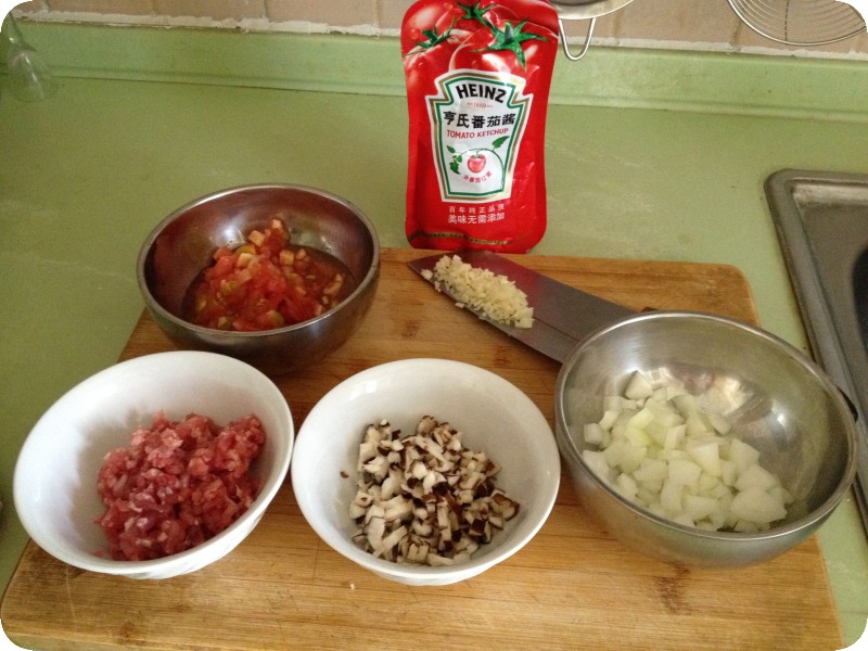 说来也奇怪,贝贝从小就爱吃意大利面,每次带她去吃自助餐,她都是先来一份面吃着,去巴贝拉、必胜客之类的店,她也是每次必点意大利面。自知厨艺比较差,所以也就从来没想过自己能做这个听起来高大上的西餐面食,直到刚刚过去的这个暑假。回老家呆了20天,出去玩了一周,还有很长的时间就我们两个人在家,吃点什么啊,无意中在网上看到意大利面的做法,瞧着挺简单啊,恰好家里有以前鬼使神差买回来的意大利面(不会做还买了它,真是神奇,哈),于是就学着做了,没想到受到小人儿的大赞,说太好吃了。有这个捧场的小家伙在,想不骄傲都难啊 好了,闲话少说,做法奉上,原料:西红柿、洋葱、香菇、肉末、蒜、番茄沙司。以下做法的用量为两人份。