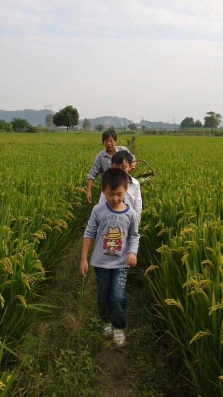在外婆家的一天 上周末我们又去外婆家了,周末没有什么事情我们都要去外婆家了,因为奶奶不在我们家,外婆来照顾我们,接送点点,到了星期六星期天外婆要回乡下去种菜浇水的,所以我们到了周末也要去外婆家,吃完晚饭我们再回到城里的。 到了外婆家玩伴还是很多的,村上很多小朋友喜欢骑自行车,在村子里转来转去,因为村子小,我们在前面转,也没有什么车子,前面的一个小哥哥总是会来找点点玩的,还用自行车带着点点去村子里面转,我觉得有点不安全,就不让点点坐他的自行车了,毕竟孩子还小,还是有很多不安全的因素的。 点点跟着外婆去田里摘菜,那个小哥哥也要跟着去,他们三个都去了田里,我在田里这头等他们,稻田一片绿油油的,稻子快要成熟了啊,过一阵子就可以收割了。点点他们采回来很多蔬菜,还有山芋,外婆还种了桔子,采了几个回来吃一下,下次我们可以自己去桔子树上采桔子的,还有去河里采了茭白,都是非常新鲜的蔬菜,小哥哥还采了一根黄瓜,就洗洗干净吃起来了。