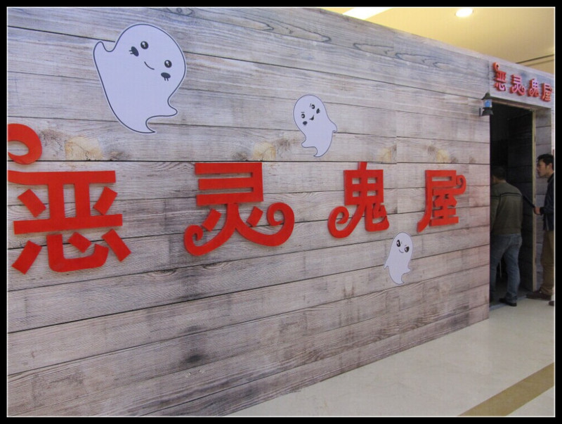 昨晚一家人逛商场,发现了一间“恶灵鬼屋”。Aric不认识字,但是却知道那鬼屋上的小幽灵图画,问是不是鬼?我说是啊,里面肯定有鬼的。Aric抖了抖身子说:“妈妈,我好怕鬼的,鬼会吃人!”我说那咱走吧,不去鬼屋了。Aric赶紧拉住我说:“可是我想看看吃人的鬼长什么样子,而且有爸爸妈妈在,肯定能保护我的。”这个小家伙,既想看又害怕的心理真真的逗乐了我们,那就去看看吧,希望今晚不会做噩梦。 进入了恶灵鬼屋,我们就听到了鬼叫声,有种毛骨悚然的感觉。我四处看了看,原来有音响的啊,可是Aric却不知道,让爸爸抱住了自己,小脑袋趴在爸爸的肩膀上,眯着眼睛偷偷看。或许是万圣节的缘故吧,所以这些“鬼”并没有特别可怕,反而有种让人感觉好笑的成分,不过我们真的遇到了对于Aric来说是很可怕的景象。这是一个护士,但是五官都流着血,然后她的肚子上,还趴着一个小婴儿,也是个流血的小孩子。