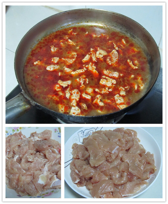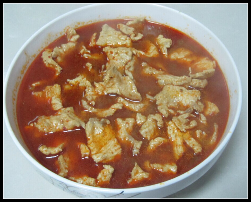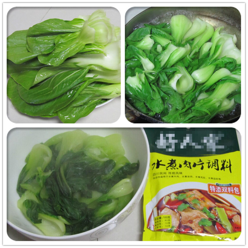 到了家后老公在玩游戏,我说那我给你顺顺菜吧,然后乐颠颠的在厨房开始收拾东西,等一切准备就绪了,就想着要不顺便把青菜煮了吧,这样老公直接可以给我炖肉,更快捷,结果我就把油菜水煮后放入大碗中,接着看看调料,又想着顺手炖好开水,然后把调料加进去,这样老公来了直接给我做就行。可是当我做完这些却发现,我已经做了水煮肉片的8成了。得了,干脆做完吧,反正都到这步了,我就这么一顺手,呜呜,把水煮肉片做完了。 详细说一下吧:首先呢就是把青菜洗干净,然后放入锅中煮一煮,我煮的时间太久,不小心就煮过了,所以这一点一定要特别注意,只要轻轻用开水一过就ok了。 ![]() 然后呢,就是锅中倒入水煮开,要求是几百毫升来着,我给忘记了,所以估摸着来,就多加了点水,怕味道不够,所以又加了点盐和鸡精,接着把调料倒进去,煮开后,再加入切好的肉。 对了,忘记说一步了,就是肉在下锅前需要加入调料包里的什么粉放置一会。 ![]() 大概5、6分钟吧,不过我煮了有10分钟,因为我切的肉比较厚,怕不太熟,所以多煮了一会,等煮好了,就把连汤带肉倒入装有青菜的大碗中。 ![]() 最后一步就是再上面撒一层红辣椒,在调料包中有自带的,所以比较省事。刚开始放了三分之一包,我觉得还好,老公说味道不重,我又加了一些辣椒。看起来是不是和我买的水煮肉片区别不大啊,而且这量绝对足啊。