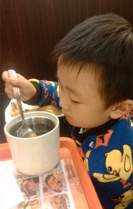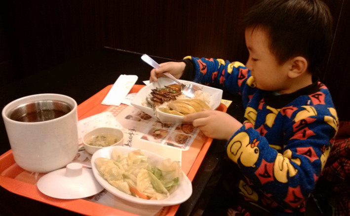 ![]() 昨天下午在科技馆玩后就被几个朋友拉去他们家打麻将去了,可运气实在太差了,打了没10盘,我就胡一个小胡,几乎手手输大胡,搞得我是完全没打牌的兴趣了,直接换人,让老公上场了,我就带3个小朋友玩去了。一直到5点半都过了,外面的雨稍微小点了,但寒气越来越重了,而且看老公的手气也不怎么样,干脆叫老公走了,不玩了,本来朋友还想叫我们玩多几盘,可我们俩手气都不好,再玩还是输,算了,少输当赢吧,闪人咯 ![]() 本来朋友也叫我们留下吃晚饭的,可我坐不住了,主要是坐冷了,还是在外面去吃要方便点,于是和老公带着就自己坐车去了观音桥的广场,那里还稍微熟悉点,因为那里吃饭的地方很多的,想在罐罐也要吃饭,外面的小吃差不多都是辣的,而且都是站着吃的那种,带着罐罐就不是很方便,干脆就去快餐厅店吃,因为这家快餐厅店我们原来去吃过的,好像是香港人过来开的,环境看起来还是不错,至少很干净的,而且很安静的,价格一般是在23-45一份的,饮料是另外收费的,比一般的快餐厅的价格要稍微高点,相对来说就没这么拥挤的。 ![]() 我是先买了一份金牌叉烧切肉烧鸡饭,26一份,想着这个叉烧饭是不辣的,罐罐应该可以吃的,那知道是完全出乎我的意料。这个配了一小碗鸡汤,一份白菜的 ![]() 罐罐一看饭来了,问都不问,自己就直接端到他那里去了 ![]() 马上就舀了很大一勺饭和一整块的叉烧放嘴里去了,我还在说他,你慢点,没人抢你的,就见他嘴巴塞得满满的在嚼,可没一会就不行了,看他样子感觉他好像有点难受了,赶紧叫他吐出来了,原来是饭包得太多了,嚼不动了,哈哈 ![]() 赶紧叫他喝口汤 ![]() 然后我把那几块叉烧弄小点,把那些酱汁在饭里面拌匀,告诉他吃东西时不要这么着急,小口小口的吃就没事的,这样吃起来就很轻松了,罐罐竟然来句,我要把这碗全部都吃完,额,这也太厉害了吧。最后是吃了三分之二,还是很不错了,胃口真好呀 ![]() 这是罐爸吃的什么蒸排骨,其实开始我就想要这个的,还好没要这个,罐爸那份我特地品尝了一下,感觉不是很喜欢,这个是28一份 ![]() 这个才是我吃的,木桶炒腰花,好像是36,记得原来在机场两路那边,有家的木桶饭是特别好吃,每次去到那里都要去吃一份的。 ![]() 这就是我们昨天晚上的晚饭,罐罐这个吃货,回家后还吃了一个小面包,喝了盒牛奶的,顺便还吃了两包薯片的,而且在睡觉时还喝了200ml的奶的,胃口是真的不错呀。 本作品未经作者许可不得转载,转载请征求作者意见。擅自转载使用,将保留追究其法律责任的权利!