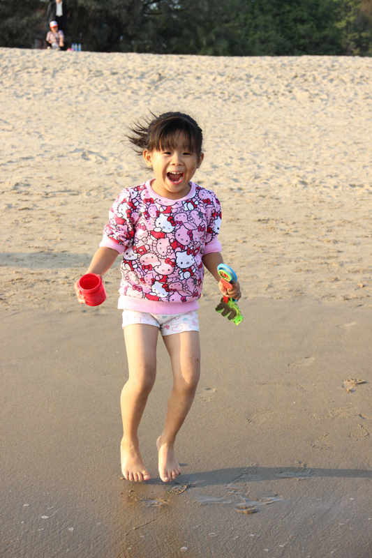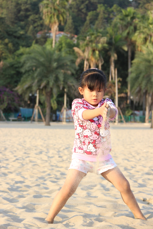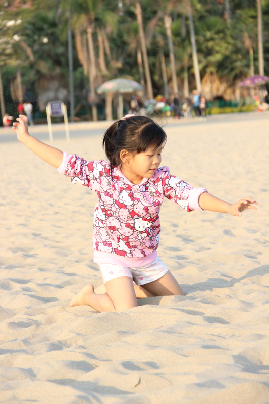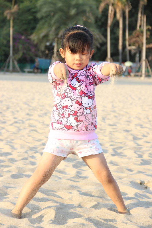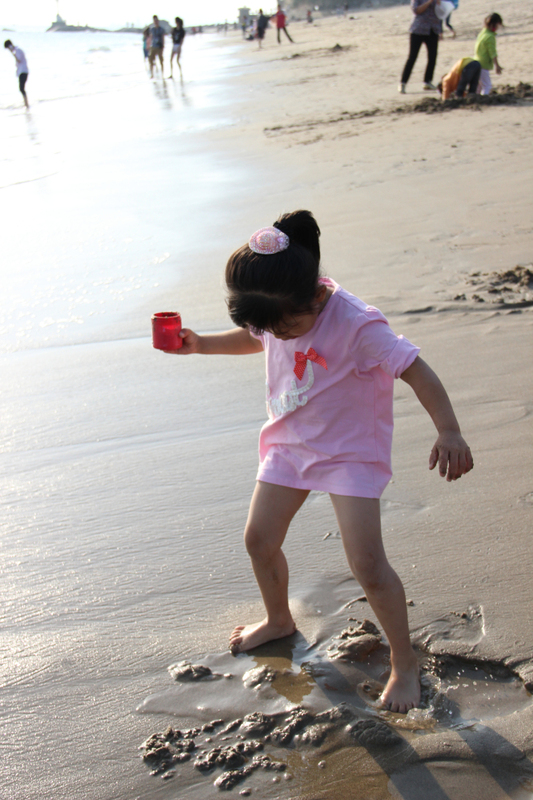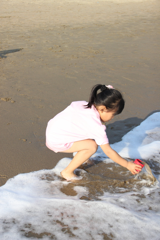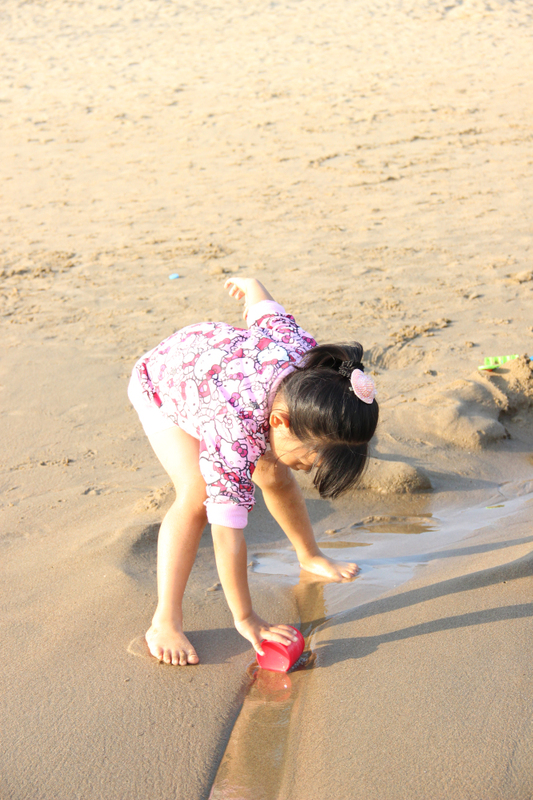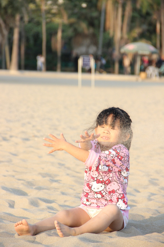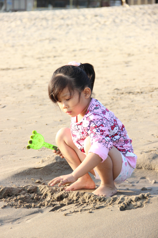 感觉水资源紧张了,还是自行到海边去取水吧。 经过海水的侵袭,之前的那个大水坑,现在已然踪影全无,只好再继续建造新的储水坑。 宝宝在玩的过程中衣裤不小心弄湿了,赶快换一身吧。不过,在换之前得先把身上的水分弄干净,要不然蹭到新的衣服上怎么办呢。宝宝的办法就借用沙子的力量来吸收水份,宝宝说这样一会就会弄干的。果不其然,一会的功夫,就都干了,赶快换了衣服继续玩吧。 拿着工具,继续造河道还有小溪。不断的加固四周,宝宝用手将四周捏成城堡的样子,想着可以阻挡住海水的袭击,可是感觉有些徒劳,不过,孩子到是乐在其中呀。这时又有一个小朋友加入了她们的队伍,于是三个小朋友一起来建造储水坑吧。 宝宝看到什么了呢这么兴奋呀?是不是海水翻滚而来呢。 这几日宝宝一般玩的都是湿沙子,我想着借着沙滩,宝宝可以感受一下干沙子呀。于是我们玩起了干沙。两只手中的沙子慢慢滑落。 和在一起搓着滑落。 沙子飞扬。 沙地上翩翩起舞。 沙子飘散。感觉沙子都快碰到宝宝的脸上了呢,呵呵,其实不然。 站起来继续玩沙吧。玩得玩得宝宝还扭了起来,瞧宝宝开心的样子。 继续感受沙子的魅力。 最后宝宝突发奇想,用沙子来制造出一个沙子滑梯,制造的过程如何呢,且看宝宝的动作,嘻嘻,宝宝用自己的小屁屁摩擦出一个长长的滑梯呀。 这时远方的天空霞光可见,我们还要赶往码头准备回厦门,因此,当天的游玩到此结束。 本作品未经作者许可不得转载,转载请征求作者意见。擅自转载使用,将保留追究其法律责任的权利! |