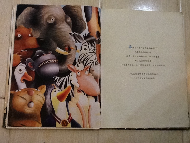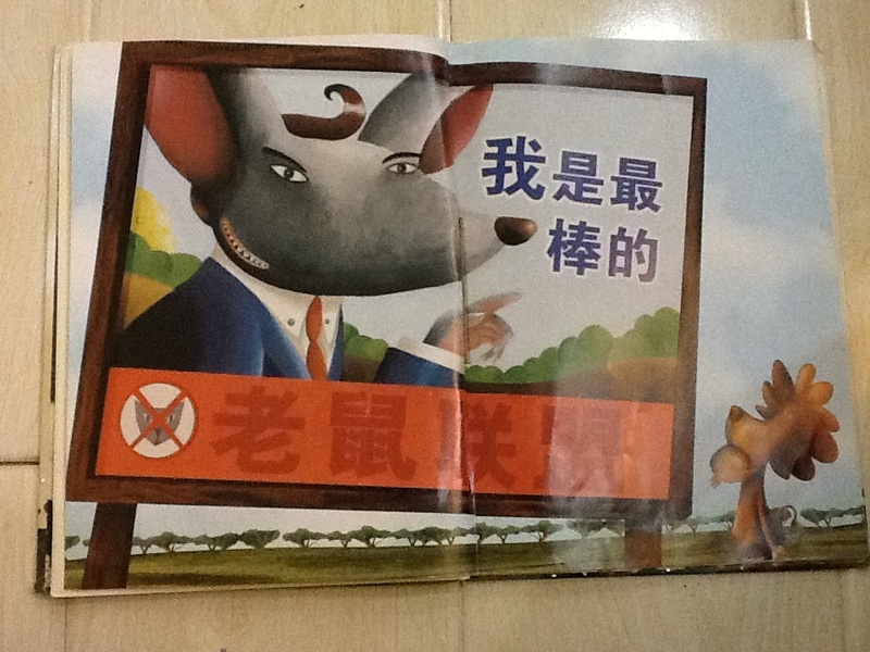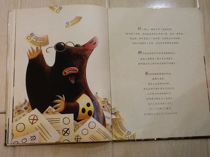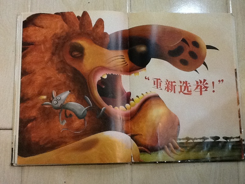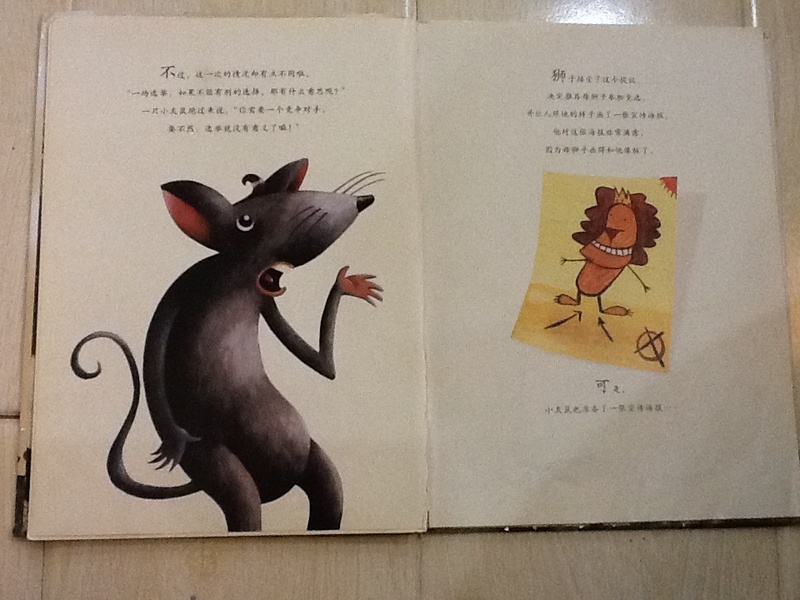 小灰鼠也画了海报,上面写着"我是最棒的",老鼠对于自己的表现明显是很满意的。其他动物看见小灰鼠参加竞选了,也都想参加,结果每一种动物都派出代表参加新国王的竞选,然后他们就开始演讲了。