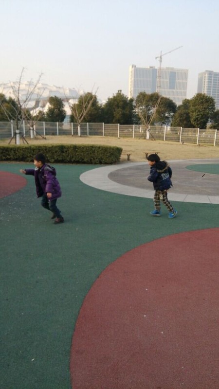 两个小朋友还互相追逐打闹,点点每次追sky的时候总是追不上,因为sky跑得太快了,而sky追点点的时候总是一追就追上了,可是点点很机灵,就是不被sky抓到,他们还有什么防御武器,那是大人们不懂的东西,只有小朋友们才知道那是什么,两人玩得很开心呢。