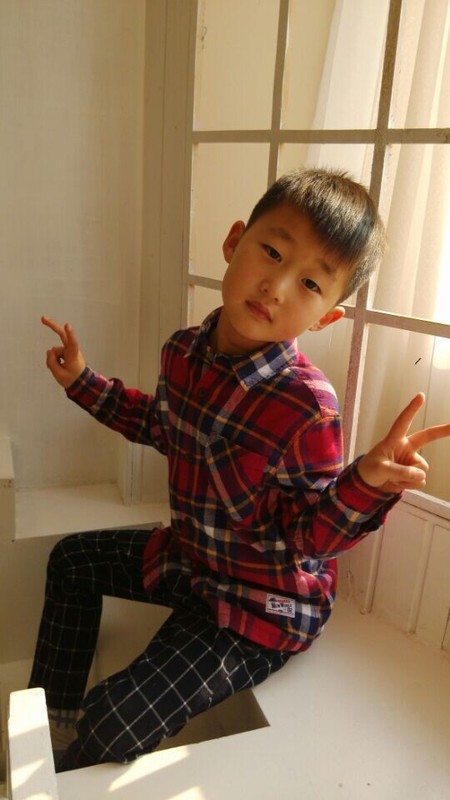 这是穿了黑色毛衣的效果,很神气吧。我觉得穿上黑毛衣,这样很温暖,也很有味道,我很喜欢穿黑毛衣,点点却不喜欢,搭配上红格子衬衣,点点就喜欢穿了,说明点点很喜欢亮色,不喜欢暗色调。 这是脱了毛衣以后,仅仅穿上衬衫也是很可爱帅气的,点点很喜欢这件衣服,这几天都是一直穿这件衬衫了,在温暖的阳光下,看起来更加阳光了,很喜欢这样的阳光的感觉。