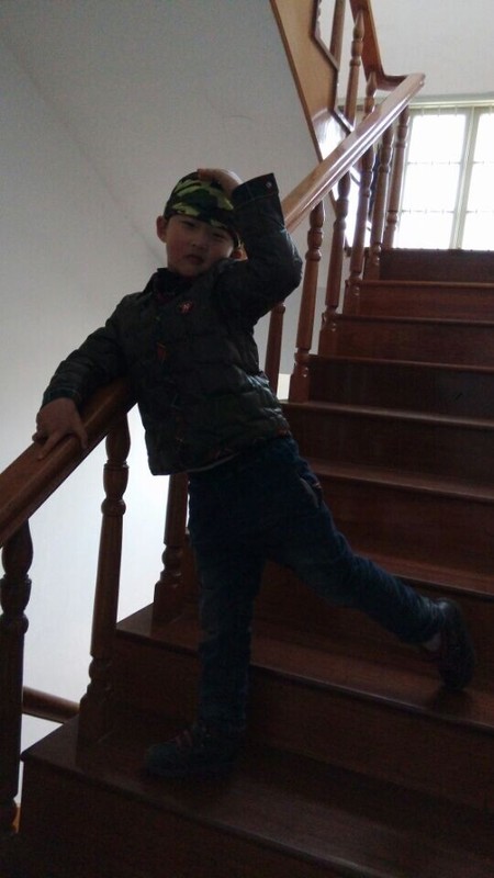 首先我们在楼梯上拍了几张照片,点点摆的姿势也很酷酷的,但是不怎么适合这个主题,照片也不是很清晰,然后我们找到一个白色的墙壁做背景,再继续拍。