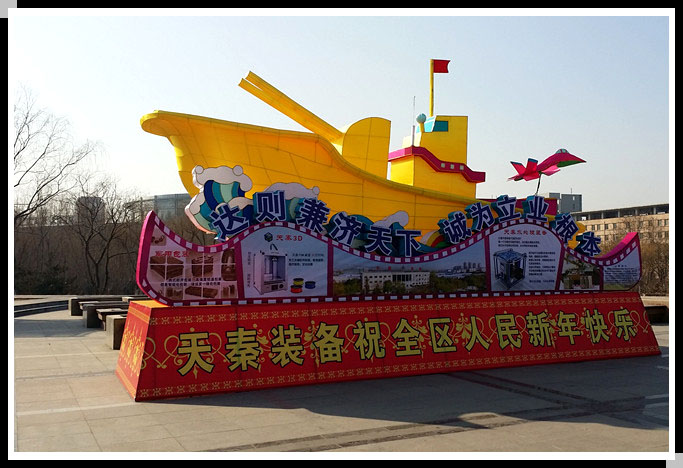 一艘船造型的花灯, 黄色的很显眼