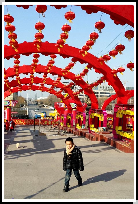 花灯都挂上了呀,有了过年的气氛了。