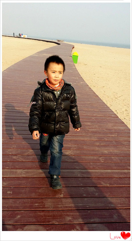 看照片是不是有种意境好美的感觉呢!能有此次玩耍纯属偶然嗯,本来是带儿子去接爸爸下班,结果倒是成全了一家三口的休闲游玩。爸爸特意提早出来了,然后根据小家伙的要求带着去了海边玩,来到后又有了意外的惊喜就是这里居然也有栈道了啊,走在木制的栈道上,一边是大海,一边是沙滩,行走其中,空气中弥漫着风儿吹来的大海的味道,整个人会感觉到那种自由自在的惬意和浪漫温馨的轻松。