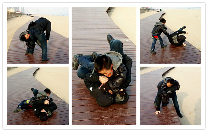 在栈道上上演了一场“妖怪,那里跑”的故事。故事的主角是儿子和爸爸。宝贝充当的是猴哥,爸爸则是妖怪了。一直很喜欢西游记故事的宝贝这次又有机会感受故事中的剧情了。本来是由父子二人玩摔跤引起的,小家伙抱着爸爸的腿一心要把老爸来摔倒,二人僵持了一段时间后爸爸突然摔倒,其中也有让这宝贝的成分的,然后小家伙伺机而上的扑倒在爸爸的身上,相当的速度和麻利呢,在后来当爸爸要起身的时候,小家伙又是赶紧按住并且大喊一句“看你往那里跑”,更是把老爸也够逗乐了,一下子没了力气,直接被猴哥拿下了。
