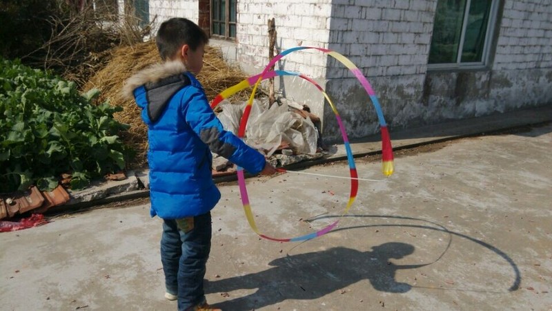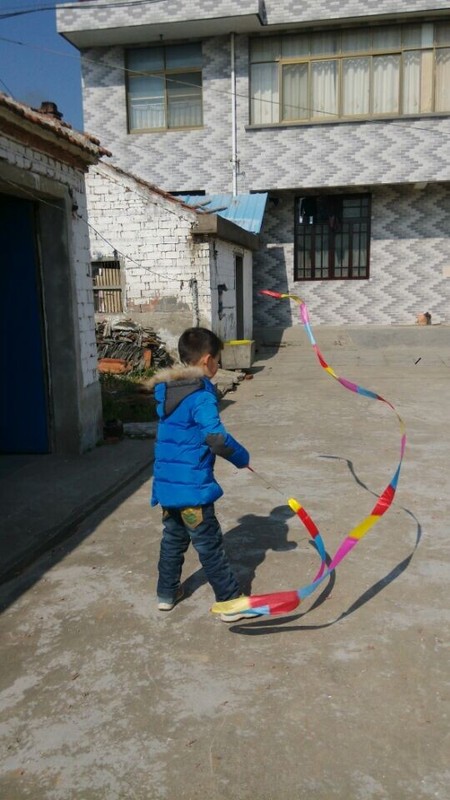 点点很喜欢这个彩带,可是家里地方很小,所以买回来以后也没有机会玩,这样我们回乡下的时候就把彩带放在后备箱里面,想玩的时候就可以拿出来玩一下,点点说还可以和小朋友一起分享呢,喜欢分享,有进步了,变得大方一点了。