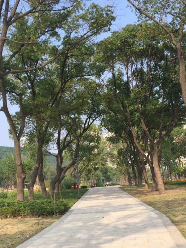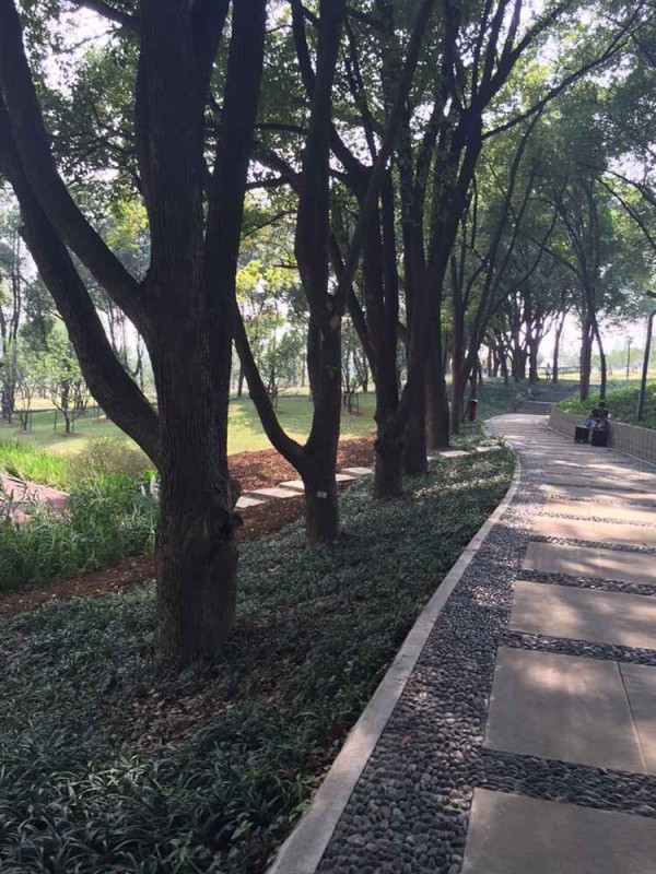 看完房子,我们就去公园转转,这个公园很大,中间有一个芙蓉湖,边上都是一些草地,还有山丘,我们走在林荫小道上,虽然天气很热,可是这边的树林覆盖面积大,所以走在公园里一点也不觉得热呢。