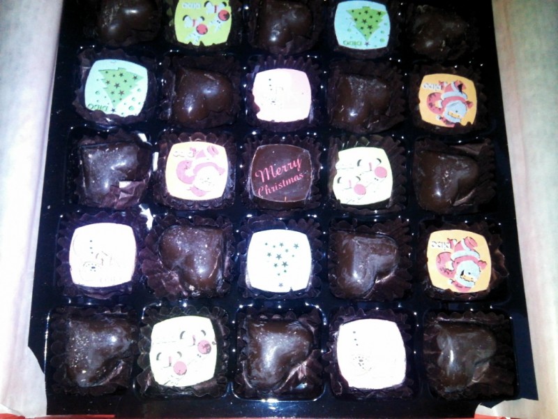 收到的巧克力图案是跟圣诞节有关的,刚好快到圣诞节了,正中间有一块巧克力上面还有Merry Christmas的字样。我记得当时第一次购买的时候,看到上面各种各样的图案。想着这卖家也太不卫生了,不是说纯手工制作吗?居然还在上面贴上图案,这是吃的东西,怎么能够这样,这能吃吗,很是让人怀疑。后来我就想把上面的图案撕下来再吃,没想到撕不下来,倒是巧克力被我弄下来了,我才知道这些图案都是巧克力做的,真是太赞了。
