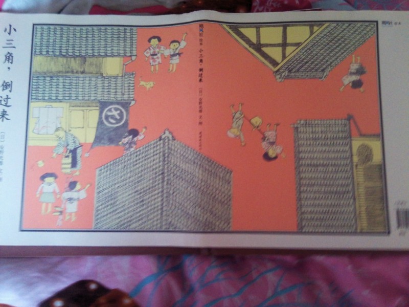 有段时间没有参加分享了,上周星期五二宝睡觉了,而我自己也不困,看看时间,刚好有分享,也就参加了。星期五参加的分享,有幸分享到了绘本,没想到周日下午就收到了,速度真是快。我妈去拿的快递,我还想我没买东西啊,原来是绘本《小三角,倒过来》到了。