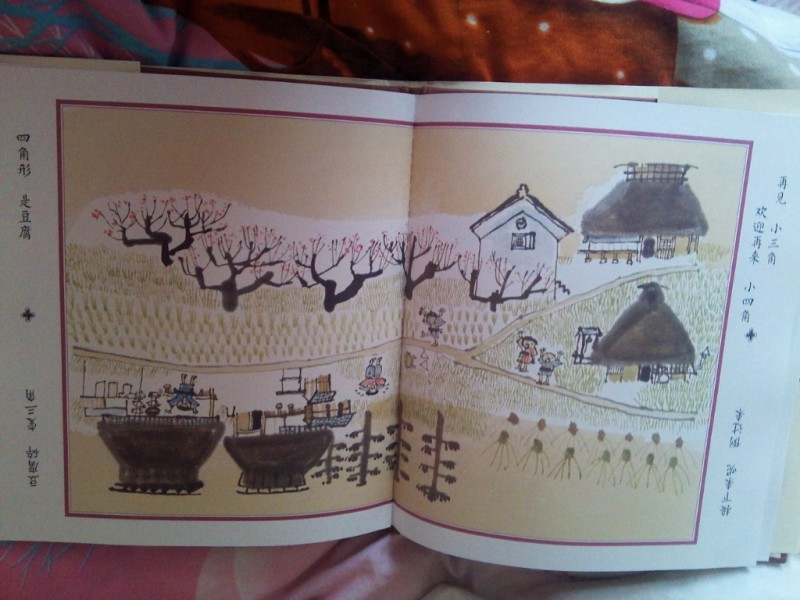 这本绘本是日本绘本大师安野光雅根据日本广为流传的古老歌谣绘图而成的。安野光雅是画家、绘本作家、随笔作家。这本书运用水墨画法,对每一页的画面效果进行了最大程度的创意发挥,我第一次知道居然还有这样的书,一本书看完之后居然可以倒过来继续度,真是太有意思了。