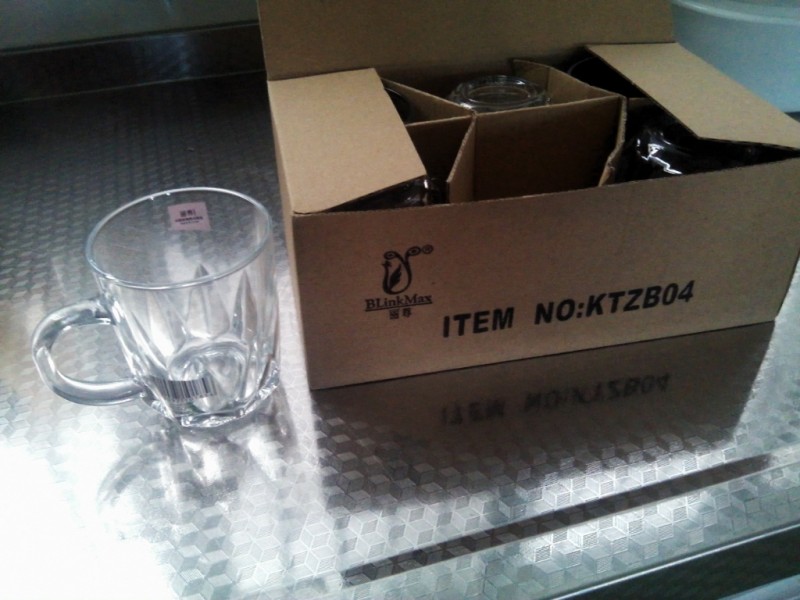 之前看到宣传单上说玻璃杯只有1.9元一个,很是便宜,看式样也是挺好的。昨天没有找到,人太多了,也没有细看,今天人稍微少了一点,我们就慢慢的寻找,原来就在二楼的电梯附近,杯子不是很大,但用来喝酒还是挺好的,而且是有把的,方便。比我之前买的玻璃杯看着大气,我之前买的太小了,而且也没有把,不好拿,都被儿子打碎了2个了,希望这次买的杯子能够用的时间长一点。我们就买了12个,刚刚好两盒,怕有坏的,还一个一个的拿出来仔细看了下才买的。