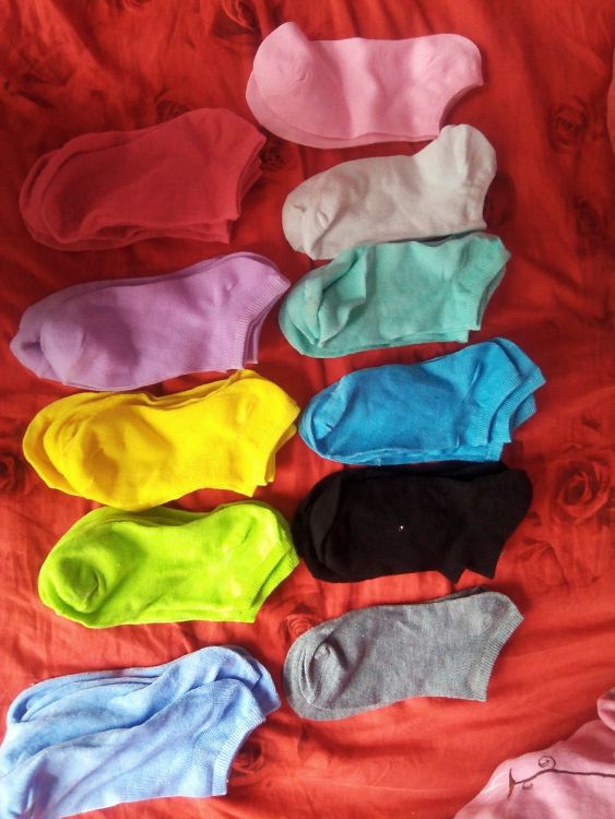 昨天心血来潮就看了下评价 ,忐忑了,居然评价也不高,当时买的时候忙着带孩子,都没有细看,就问了发什么快递,其他的什么都没有看。有一部分的人说收到的船袜有少的现象,还有的人说抽丝,要是这样就没有办法穿了。这个卖家发货还是挺快的,今天下午接到中通的电话,我想起来好像是袜子,接电话的时候女儿要睡觉,我就让我妈去拿的。 快递拿回来拆看一看,手感还挺好,卖家说是纯棉的,我不知道到底是不是,就算不是的话,棉的含量应该也是挺高的。数了一下,确实20双,还不错,没有发生如其他卖家所说的少发、漏发的现象,各种各样的颜色,真的挺好看,粉红色、黑色、紫色、玫红色,果绿色、姜黄色。。。这样数了一下,我居然买了11种颜色,9种颜色是各买了2双,还有2种颜色各一双。