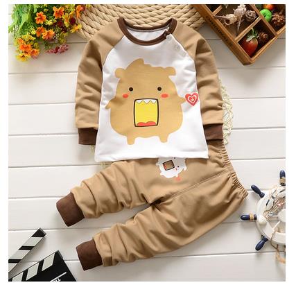 我买的居然还看不到实物,这算什么事?后来是在我威逼利诱之下才看到这套衣服,我容易嘛我,看个衣服都这么伤脑筋。裤子觉得挺长得,就跟儿子现在穿的裤子放在一起看了下长度,大概也就长了一两个厘米吧,这个问题不大。上衣是肩扣的,我当时买也是看到有肩扣才买的,儿子头围偏大,买衣服有点难,这种肩扣的就很好的避免了这个问题。 这套衣服买的是咖啡颜色的,儿子喜欢这些颜色,上衣的前面是个大嘴怪的图案,虽然说是大嘴怪,我倒是觉得这小怪物长得很是可爱,裤子上也有一个大嘴怪,只不过颜色有所不同,反正就是怎么看怎么可爱,(*^__^*) 嘻嘻……裤腰是松紧的,袖口和裤脚是收口的,我喜欢这种设计,小子也是比较喜欢的,那种大大的袖口一点儿都不好,这个让我很满意。这套衣服领口是圆领的,春天穿高领的热。