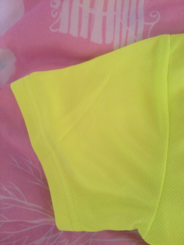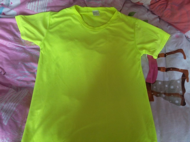 某天上午看到有一元购得短袖,等到10点更新的时候就点进去拍下了,在这之前提前询问了发什么快递,什么时候发货?这个也还是挺快的,当天就发货了,这个本来是6.8元拍下的,收货后返利5.8元,也就是说这次又拍到了1元购得商品了,(*^__^*) 嘻嘻…… 这款短袖的颜色还是挺多的,有红色、蓝色、黑色、白色。。。一共有12种颜色,6个尺码,本来是想买给老公穿的,刚好有适合他这个大胖子的尺码,后来看到有荧光绿,这个颜色我挺喜欢的,就给自己买了,这款是运动型的短袖,尺码应该是偏大的,本来是打算怕M码的,后来想想要是小就没有人可以穿的下了,就该拍了L码,夏天穿,大一点也没有什么关系,大点舒服的。