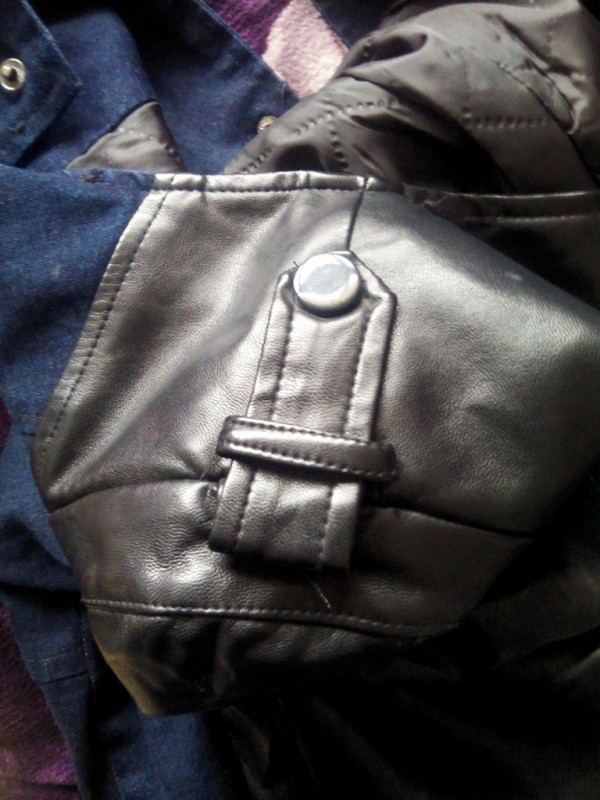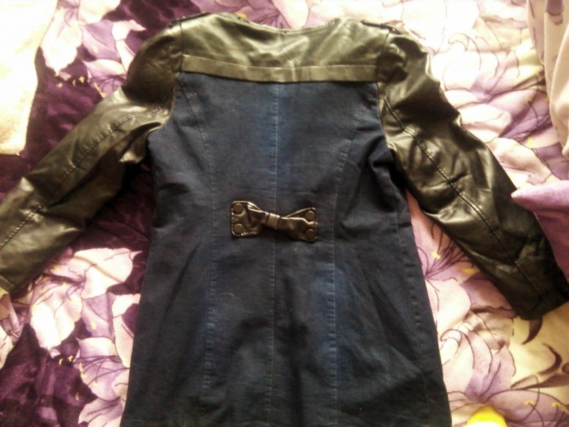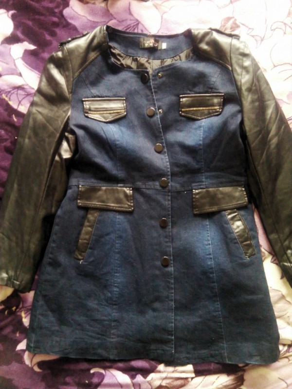 这款棉衣是薄款的,虽然天气越来越热,只是像我妈她们没有我们怕热,这款薄款的刚好适合她现在穿,她们还是带暖和点比较好。这款牛仔棉衣两边的袖子都是皮的,口袋口也是皮的。是这是款无领的棉衣,我发现现在无领的衣服越来越多啊。背面腰部还有一个皮质的蝴蝶结,很可爱。肩膀部位也是有装饰的,但不复杂,就有点简章的意思。 老妈买的这款是按钮的,跟我买的那件不同,我那件是拉链式的,虽然也就五十元,但我们也认真的看了下,衣服的质量还是很不错的。我妈有点胖,拿的是2XL的。本来卖这么便宜我们就很疑惑,后来才知道是断码了,才便宜卖的,这算不算讨巧啊。