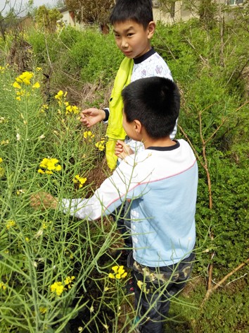 晨晨对于抓蜜蜂还是有一点害怕了,他只要在一旁找蜜蜂而已,抓的任务就交给了哥哥,现在的天气抓蜜蜂真是很简单,没一会儿就抓到了,不过他们又放走了,因为知道如果把蜜蜂放在密封的瓶子里的话它会死掉的,小小的油菜田也成了孩子们玩耍的场所,晨晨和表哥在那片油菜花田一玩就是几个小时,太阳如此的毒,这也一点儿也不影响到他们,看来这就是孩子的乐趣,而我只呆了一会儿就受不了了,因为温度太高了,哥哥是一个不错的哥哥,还告诉了孩子一些油菜花的常识,正好晨晨前几天也看了关于蜜蜂的故事,它知道蜜蜂采完的蜜放在哪里,这二个孩子还真是有意思呢。