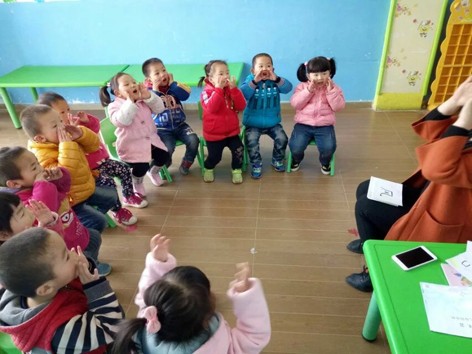 汪老师是文文幼儿园的语文老师,虽然这是一个不大的私立幼儿园,不过也有专门的语文老师、数学老师和英语老师,最主要的是每个老师都非常的爱孩子,经常在家里听到文文夸赞老师呢,汪老师是一个说故事非常生动的老师,每次教孩子们认字的时候,都会很能够吸引到孩子的注意,这一点我就不行了,因为我每次说话好像孩子都不怎么听呀,小班的人数不多,一个班就十几个人,实际上人越少越好呢,这样的话,老师对孩子会更了解一些,看文文那个大笑的表情,真是有意思,是不是知道老师要拍照呢,所以笑的特别开心,那个衣服上面有个卡通人物就是文文啦。 老师教孩子们练习发声,孩子也学起了老师的动物,用双手放在嘴巴边上,然后大声的发出声音,不过我们家长只能够看到照片,而不知道具体内容,当然对于家长来说已经很开心了,因为老师会经常发照片到群里面,让我们都能够看到孩子的表现,为了能够让孩子和老师不再有压力,老师和孩子们一样,都是坐在椅子上,然后动听的说起了字宝宝游戏活动。 实际上这个活动就是让孩子学习认字,虽然我家文文已经完全会被幼儿园里面的儿歌和短文了,但是却是一个字也不认识,他只是会背而已,老师的方法是让孩子们不仅会背还要会认识,老师说的生动,孩子们就会愿意听,看这里的孩子们是不是个个听得非常的入神,幼儿园的环境也不错,老师也很负责任,我真是觉得自己选择的幼儿园是不错的,让孩子能够开心的在这里上学。