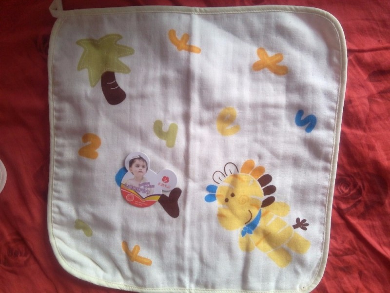 黄色的我本来以为上面的图案是一样的,再一看原来不同,黄色的一条毛巾上面的动物是黄色的,居然还有一颗类似椰子树的小树啊,还有数字和字母。这次的两条毛巾也是一面是纱布的,一面是纯棉的那种,还挺好的。貌似给忘记了,本来是打算再买3条毛巾的,居然给忘记了就买了2条,等有空再去买吧,反正超市就在那里,也不会丢了。