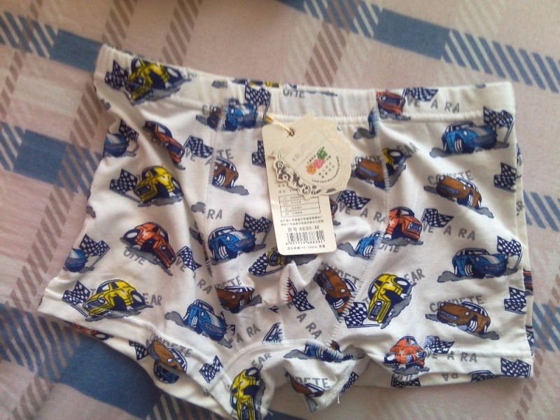 买的这条内裤儿子穿着稍微有大一点点,只是我没有看到S码的,就穿M码的吧,只大一点点,也不碍事,还挺不错的,儿子说穿着挺好,这小子比较挑,要是不舒服就不会再穿的,看来穿着也是挺舒服的。今天早上去超市又买了两天同款的M码的。 只有三种颜色,一种是汽车的蓝色偏多,一种是小青蛙的绿色夹杂着红色,而且还是爱心形状的红色,怎么看怎么觉得别扭啊,感觉像是女孩子穿的一样,还有一种颜色是猴子的,深橘色的。我找了一会就只有这三种颜色,就拿了青蛙的和猴子的。后来我妈看到也说青蛙的那种不好看,让换成汽车的,之前买的一条就是汽车的,只要舒服,只要我们自己知道就好了,一样的又有什么关系呢。也就是说我买了两条一条汽车的一条猴子的,都是儿子比较喜欢的啊。