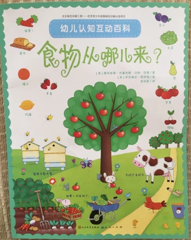 《幼儿认知互动百科》,看到这套书的简介就被其精彩的画面和精致而丰富的内容深深吸引。收到书果然很是不错!大开本,绿色环保印刷。虽然是平装本,印刷质量却是一点儿不输精装本的呢!!