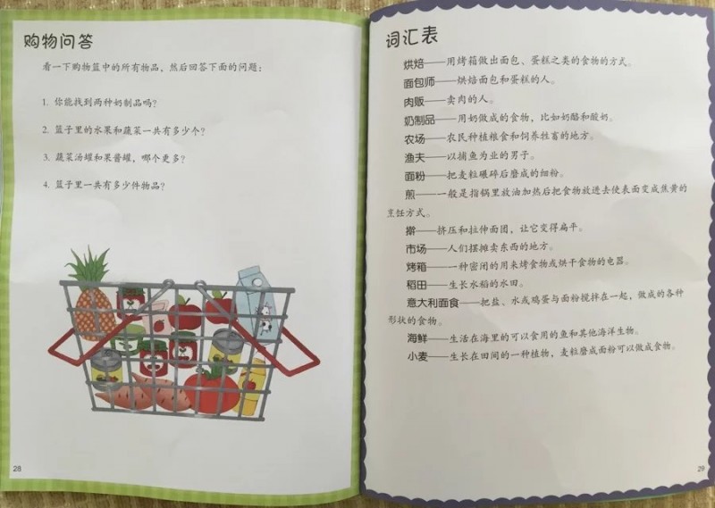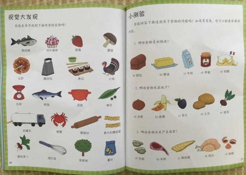 ![]() 简介里说套装里的四册内容是根据幼儿的认知特点,采取的循序渐进、由简到难的顺序设计的。而我收到的这本《食物从哪儿来》刚好就是第一本,也就是最简单的一本。不过说实话,我觉得内容并不简单啊。我家五岁多的宝贝已经是幼儿园大班的孩子了,坚持亲子共读也已经三年多了,但是对于他来说,这本书中的很多内容都是他所不知道的。或者说是平时生活中所忽略的知识和生活常识。所以说这本书是非常实用的! 这本书的里的图画都非常精美逼真,色彩靓丽明快,很是吸引孩子。小家伙看到书就主动自己翻看起来,一边看图还一边不停地发着感慨:“欸,我看这本书是教人怎么种东西的。/哇!好多的水果和蔬菜啊!这个是樱桃,这个是......" ![]() ![]() 书看着不厚,内容却非常丰富,里面描述的物种更是多达数百种。照理说这样的认知书跟故事绘本相比,实在是缺少了些趣味性。不过,小家伙很有兴致地大略翻看了一遍后,居然又很专注地跟我一起认认真真,一个内容不落地又看了一遍,仍然没有困倦的感觉。看完后又被内封底其余三册的封面吸引,央求我给他买其余三册呢。 ![]() 要说这本书的内容有多丰富,看看目录就知道了。 ![]() 全书简介了蔬菜、水果、肉类、海鲜、面食、米食等各种食物的来源和种类。以及如何储存食物,如何烹饪等。还为小读者们描述了植物的生长过程。 单单是蔬菜的世界就是如此地丰富,小家伙真是大开眼界:有的蔬菜是吃地下部分的球茎或根,有的是吃叶子,有的是吃花。还有,好多植物果实到底是属于蔬菜还是水果呢?小家伙真是傻傻分不清楚呢!如果不是看了这本书,可能还要等很久才能分得清呢。 ![]() 而同样是牛奶和羊奶做的奶酪,全世界不同的国家都有他们独特造型和风味的代表作。小家伙最喜欢吃奶制品了,直呼:真是看得直流口水啊!每个国家的奶酪制品上都插着对应的国旗呢!我也跟着小家伙一起既开了眼界,看到如此造型之多,风格各异的奶酪,还认识了不同国家的国旗标志。 ![]() 除了各种食物的来源和分类,书中还图文并茂地让小读者们了解和认识了很多的烹饪词汇。图画中小男孩和小女孩动手擀面和用搅拌器搅打的情形让我很有感触。我每次做饭的时候,儿子也很喜欢来帮忙。尤其喜欢帮我搅拌鸡蛋。在网上也经常看到很多家长朋友带孩子去烘培店体验做饭的乐趣。其实,做饭是一种生存技能。如果从小让孩子接触做饭,孩子独立性会更强,也会更爱惜食物,爱上吃饭! ![]() 虽然是引进国外的图画书,里面描述的食物不太接近中国风味。不过,现在国际间的差距越来越小了。看这本书并没有半点不符合国情的感觉。我家就超喜欢吃意大利面食,超喜欢奶制品,超喜欢面包和蛋糕。书中介绍那些奶酪制品虽然没吃过,不过市面上都是可以买到的。好想都品尝一下啊,嘻嘻。 其实,看了这本书,我也深有感触:我家宝贝吃饭比较挑食,我总是为做什么饭而发愁。食物的种类是如此之多,生长和制作过程是如此神奇。这么多的食材,这么多的烹饪方法,每天变着花样给孩子做着吃或者买着吃,总有他喜欢吃的!有时候同样的食物换个花样孩子就会爱吃了。比如说面条吧,天天那种长长的面条吃腻了。如果给做成意大利通心粉、蝴蝶面、贝壳面、螺丝面等花样造型的话,同样是面,孩子肯定会更爱吃的! ![]() 这本书除了精美的插图和精致的排版和精心设计的内容外,更赞的是书的尾部还特别设计了互动游戏部分。有‘视觉大发现’还有小测验和购物问答。 ![]() ![]() 这些既是对书中认知内容的回顾,加深孩子的印象;同时又锻炼了孩子的观察力、判断力和分类归纳能力。而这种互动游戏设计本身也加强了图书的趣味性,调动了孩子的积极性,让孩子由传统的被动输入转为主动去探索,主动去感知丰富多彩的食物世界! 爱玩是孩子的天性,好奇和求知欲也是孩子的天性。对于0-6岁的孩子来说,每天都在感知着这丰富的世界和自然。父母的引导非常必要,但是却又不够科学和全面。而制作精美,设计用心的图画书则是我们最好的帮手。看了这本《食物从哪儿来?》,我真心认为这套《幼儿认知互动百科》正是这样的好帮手,甚至是我们的良师益友! 本作品未经作者许可不得转载,转载请征求作者意见。擅自转载使用,将保留追究其法律责任的权利! 个性签名