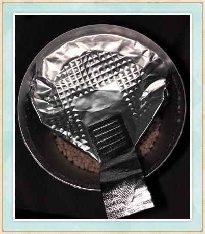 特福芬混合水果天然冲饮采用橘色、绿色等鲜艳色彩的纸筒包装。打开橘色桶盖发现,里面有一层锡纸密封,起到很好的防潮作用。更贴心的是,在锡纸边上还专门留出一个拉环,便于妈妈打开密封的锡纸。