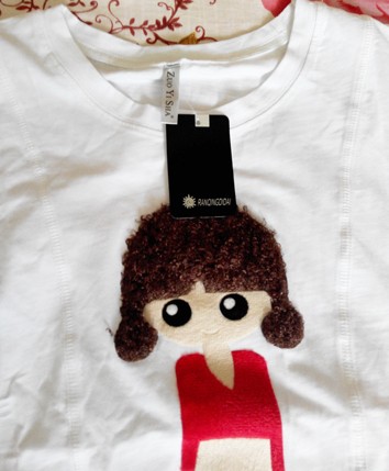 我的内心一直住着一个可爱的小公主,而且也特别喜欢可爱的衣服,特别是白色T恤上面印上可爱的图案,穿起来之后自己也会显得特别可爱,一直以来非常喜欢白色,这一次我又买了一件白色的T恤,而我第一眼看上的就是上面的小人图案,实在是太可爱了,如果没有这个小人的话,有可能我就不会买这件衣服了,我觉得T恤白色是最好的颜色,非常的容易搭配,上面的小人占了整个衣服的三分之二差不多,这个小人印的非常的形象,也是非常的可爱。 它的头发是棕色的,然后眼睛大大的,衣服是红色的,裤子和鞋都是黑色的,然后手上拎着一个提箱,感觉像是出远门的样子,这不是一件比较修身的衣服,因为我的肚子上面有肉肉,所以从来不买修身的衣服,而这件T恤的两边有着一条竖条形状,这样可以特别的修身,试穿了一下之后发现挺好看的,也不会显胖,因为白色都是比较显胖的,不过这款是不显胖的,领子是圆领的,我可只喜欢圆领的衣服,正面的小人非常的可爱,而背面就没有图案了,图案就是全白色的,正好自己买了一条桔红色的裤子,所以这二件衣服搭配起来肯定是非常适合的,而且也会比较亮丽的颜色。 本来是没有说要买T恤的,不过看到了好看的也会买一件,几十块钱的东西又好玩,肯定会买的,当然在家里还是尽量少穿白色的,孩子的小手一摸那衣服就毁容了,我是准备上班的时候穿还是不错的,夏天比较吸热,所以需要浅一点颜色的衣服会更好一些,太深的衣服会穿着更热的,现在的温度也不低了,而我早已经穿上了短袖衣服了,不知道穿上这件可爱的T恤,同事会不会觉得很赞呢,至少我觉得很可爱呀。